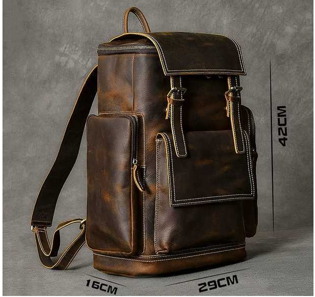 Retro Crazy Horse Leather Mens Backpack male computer bag Large Capacity 15.6 inch laptop bags genuine leather Travel Backpacks